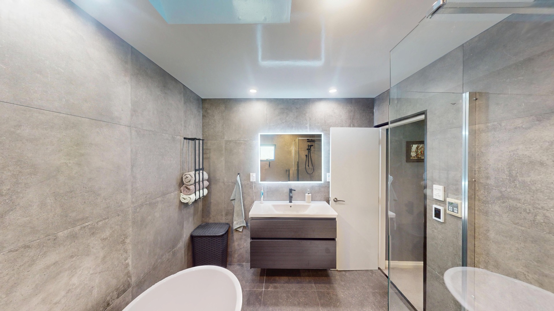 – Main bathroom with a separate bath, shower, heated towel rail & exhaust fan