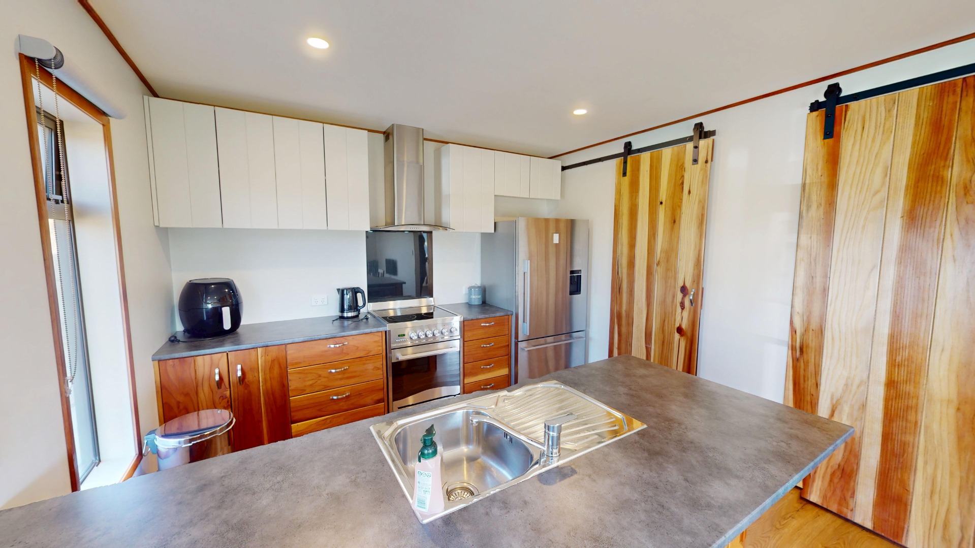 – Kitchen with an electric cooktop, oven, rangehood, dishwasher, microwave, fridge & freezer