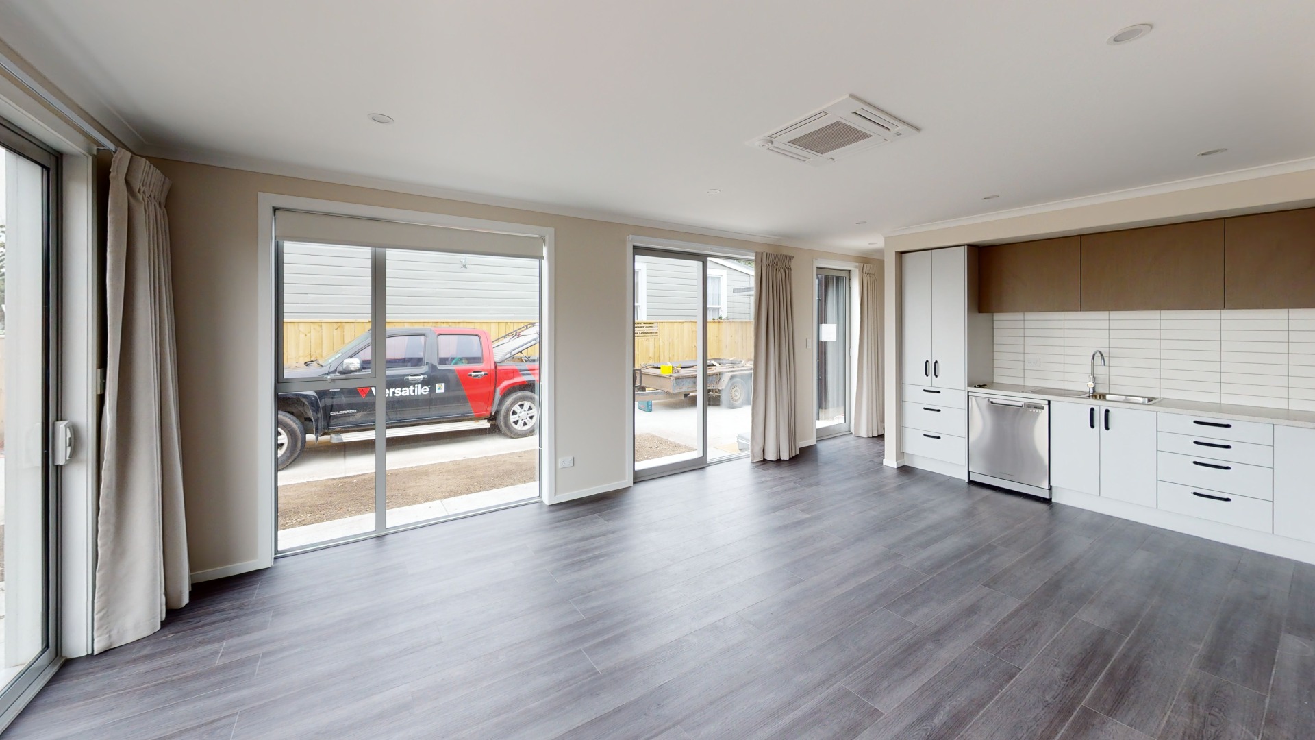 – Living room heated via heat pump