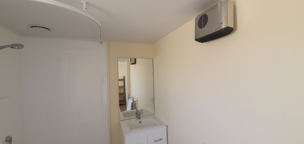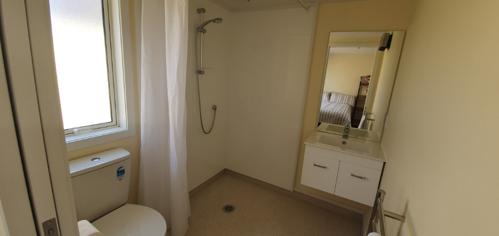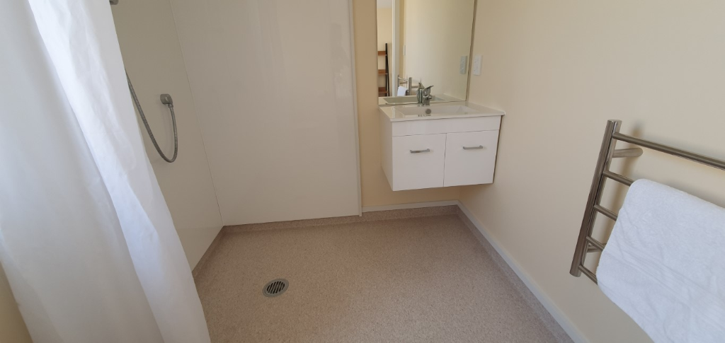 – Wet floor bathroom with shower, toilet & vanity
