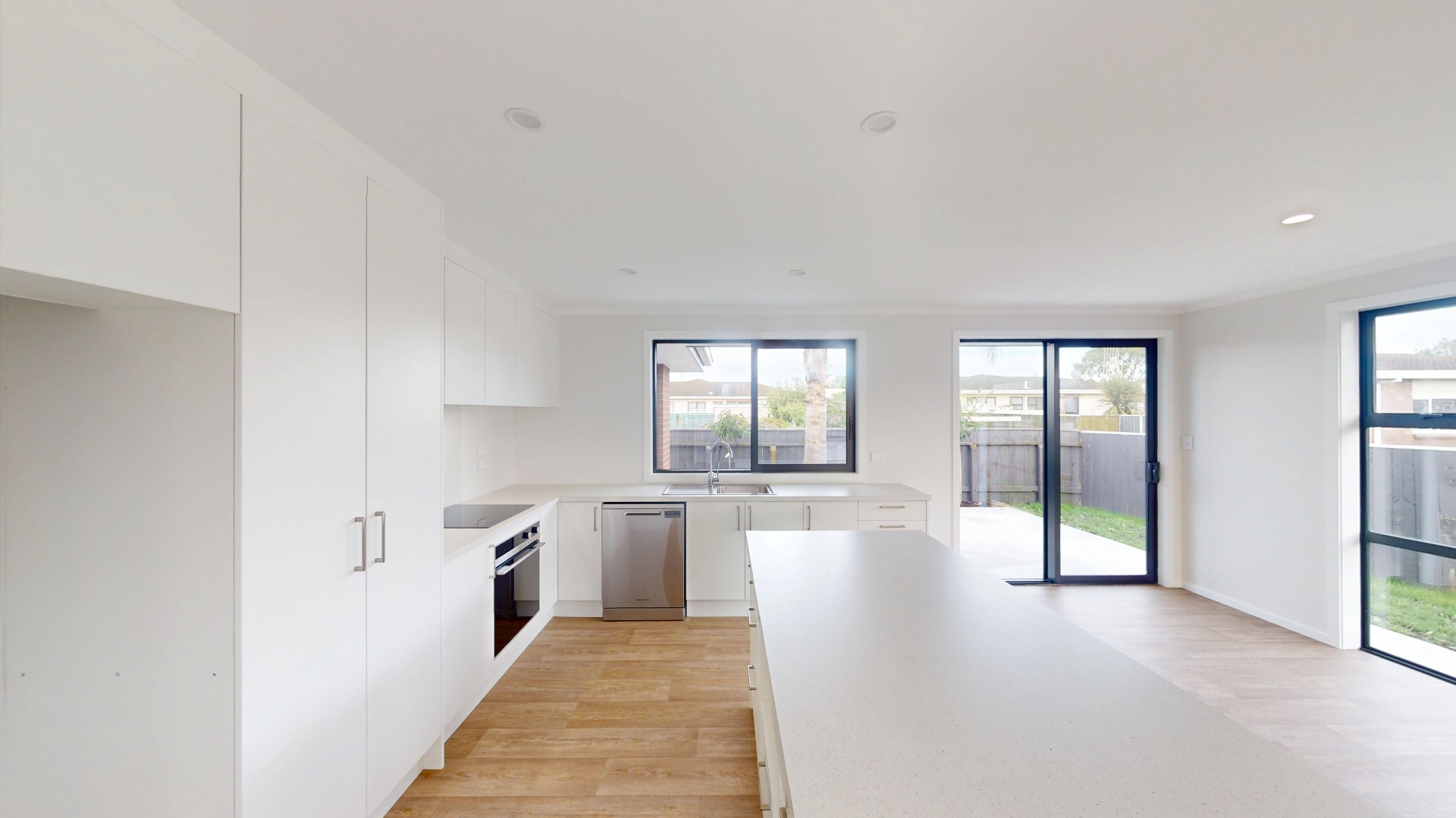 – Kitchen with an electric cooktop, oven, rangehood & dishwasher